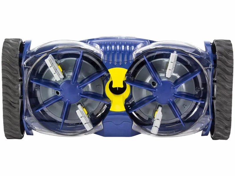 Onlangs op de markt verschenen; De Zodiac MX9. Een fantastische zwembadreiniger, uitgerust met de nieuwste technieken. Met het eigen navigatiesysteem X-Drive en de rupsbanden aan de onderzijde weet de MX9 in no time je zwembad te reinigen. Hij kan én overal komen én doet nooit plekken onnodig 2 keer. Aan de onderzijde van de MX9 vind je 2 krachtige turbines met aanzuigschroeven die middels de roterende beweging zorgen voor extra zuigkracht. Plat, oplopend, stroef of glad, de MX9 maakt iedere wand of bodem schoon.